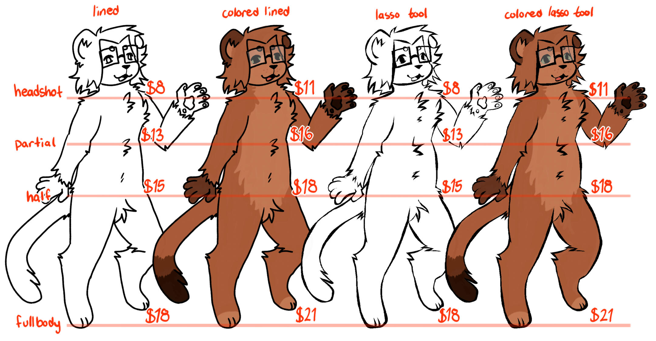 | colored fullbody | $18 | $20 | $21 | $21 |